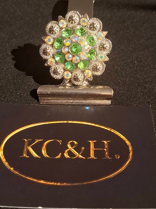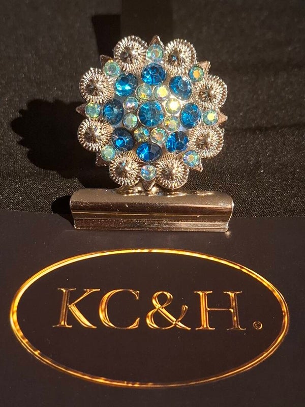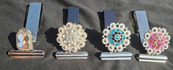 Rugclip nummerhouder met concho in verschillende kleuren.